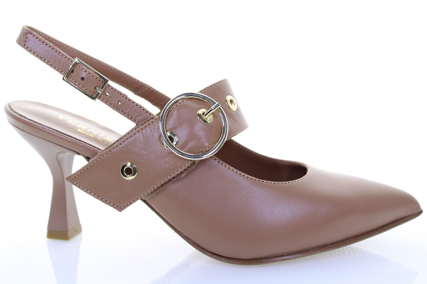 Particolarissima nel design questa décolleté aperta dietro realizzata in morbidissima pelle è arricchita con un cinturino sullo scollo del piede munito di elastico e anch'esso funzionale. Il tacco di 7,5 cm di darà il giusto slancio senza perdere rinunciare alla comodità