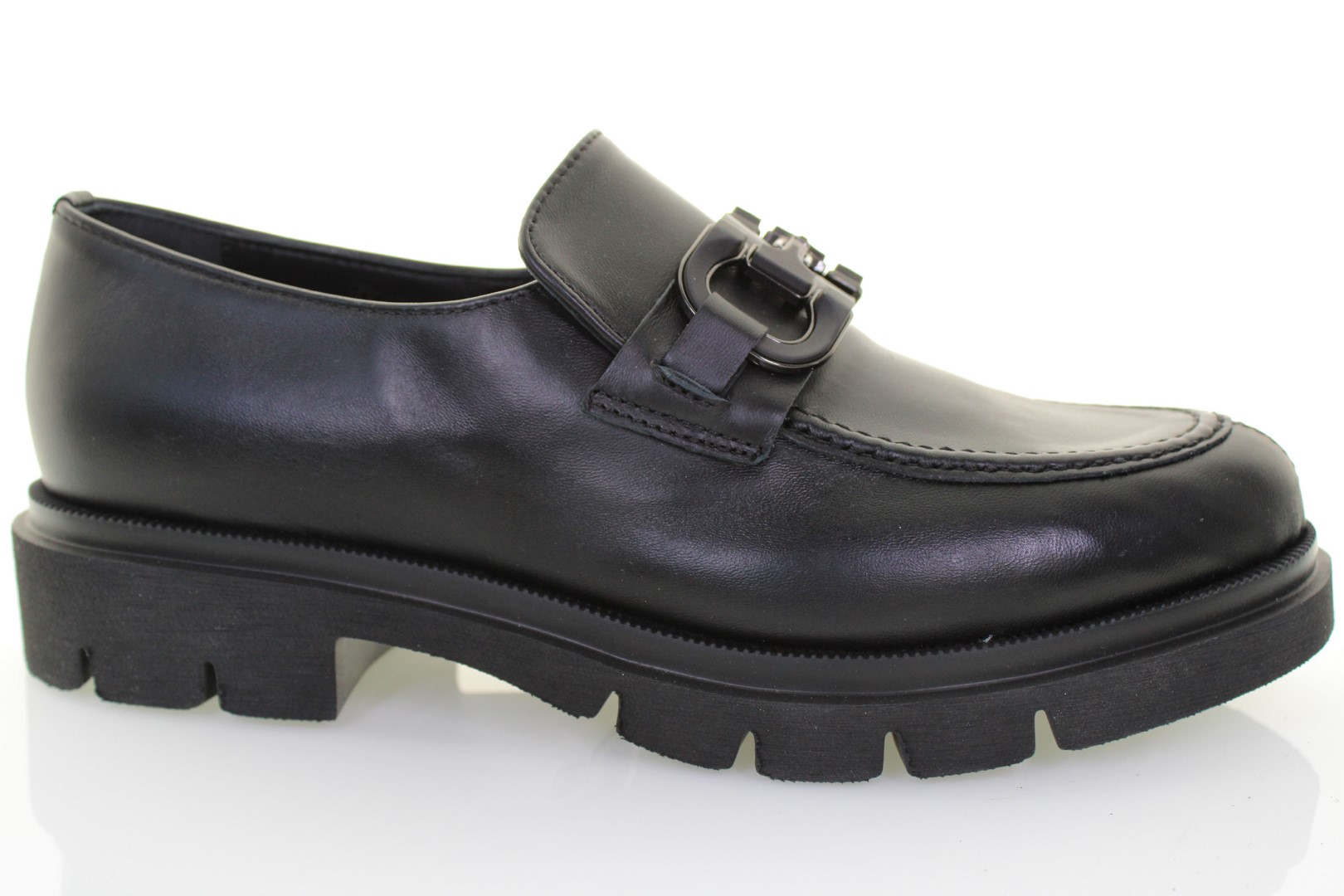 Mocassino in pelle con morsetto, elastico interno sul collo del piede, fodera e sottopiede pelle, soletta in Memory Foam, suola super leggera in altri materiali altezza 4,5 cm. Made in Italy