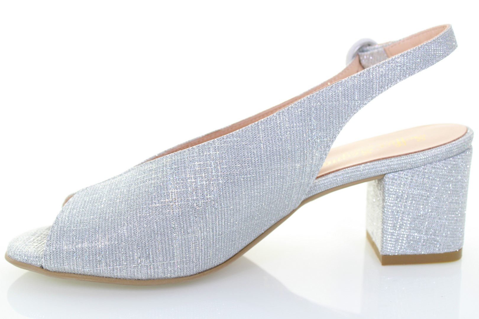 Esalta la tua eleganza al massimo senza rinunciare alla comodità con questo sandalo realizzato con tomaia in tessuto effetto glitter. L'imbottitura della soletta e il tacco di 6 cm ti donerà quel confort che ti permetterà di indossarlo per tutto il giorno. Perfetto per cerimonie e eventi speciali.