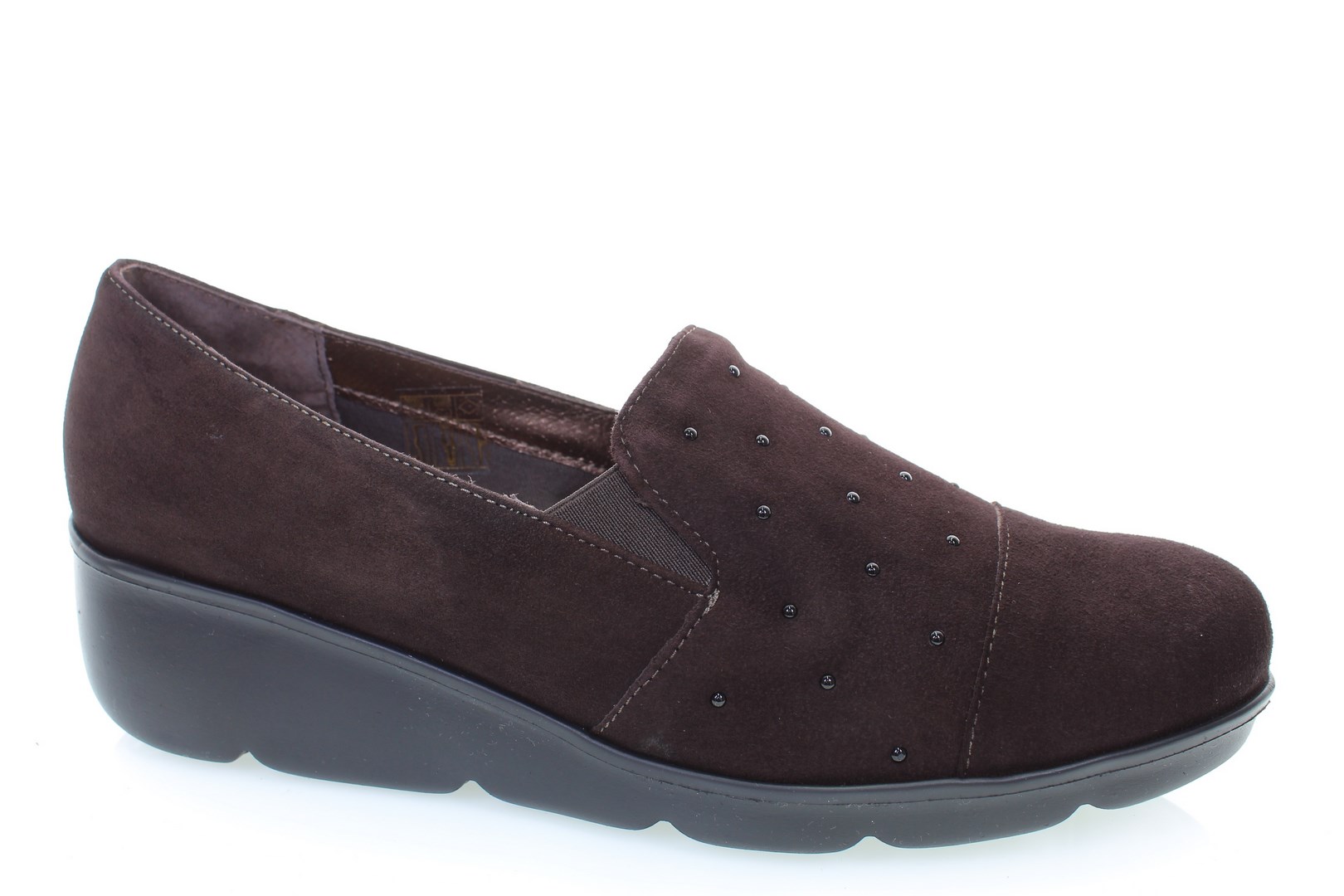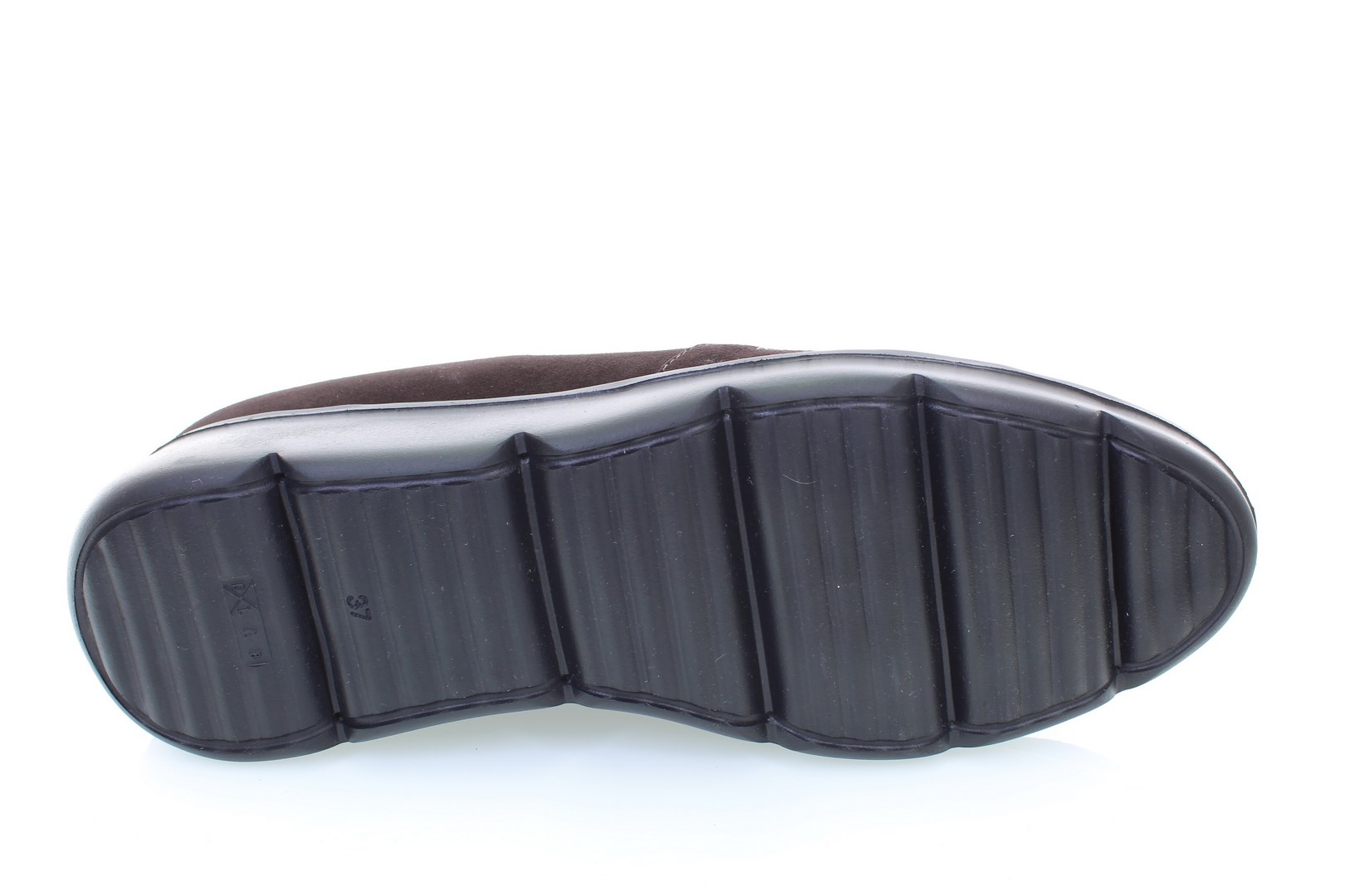 Slip on in pelle effetto vernice con parte centrale in pelle scamosciata arricchita da borchiette, fodera in tessuto maglina e pelle, sottopiede in pelle, soletta con imbottitura in Memory Foam, fondo extra light in altri materiali altezza cm 4. Made in Italy